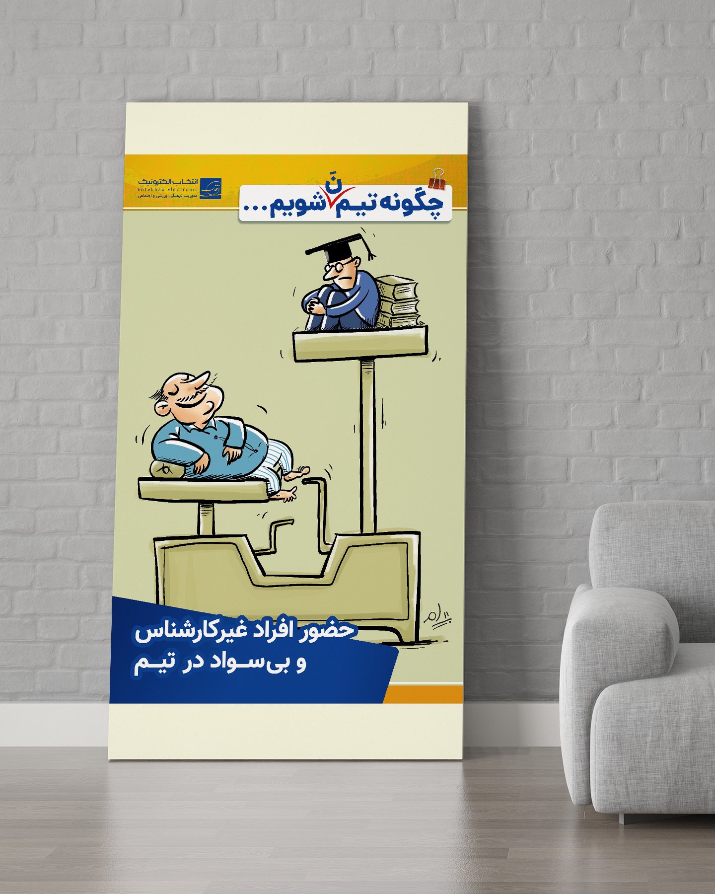 طراحی گرافیک و تصویرسازی طنز فرهنگ سازمانی (موکاپ) به سفارش گروه انتخاب الکترونیک